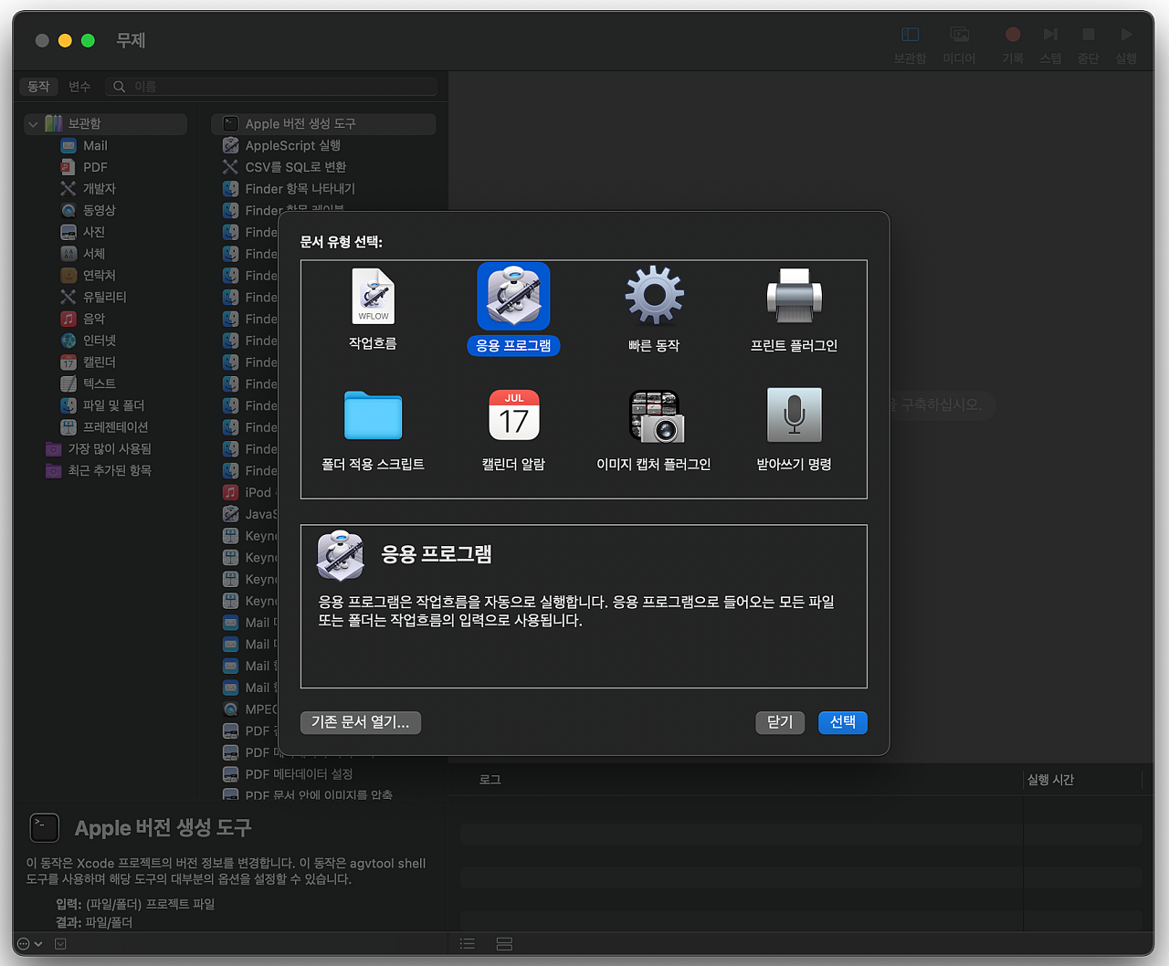 3. automator 가 실행되면 열기 화면이 나오는데 취소를 누르면 됩니다.