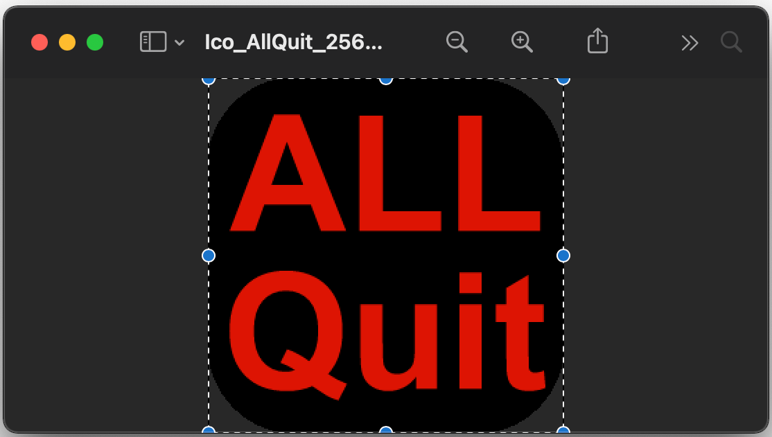 12. 아까 열어두었던 Quit All Apps.app 의 정보창에서 아이콘을 클릭합니다. 클릭하여 선택이 되면 아이콘 주변이 파란색으로 표시됩니다.