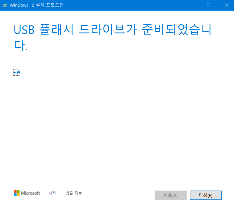 윈도우 10 부팅 USB 메모리 만드는 작업이 완료되었습니다.