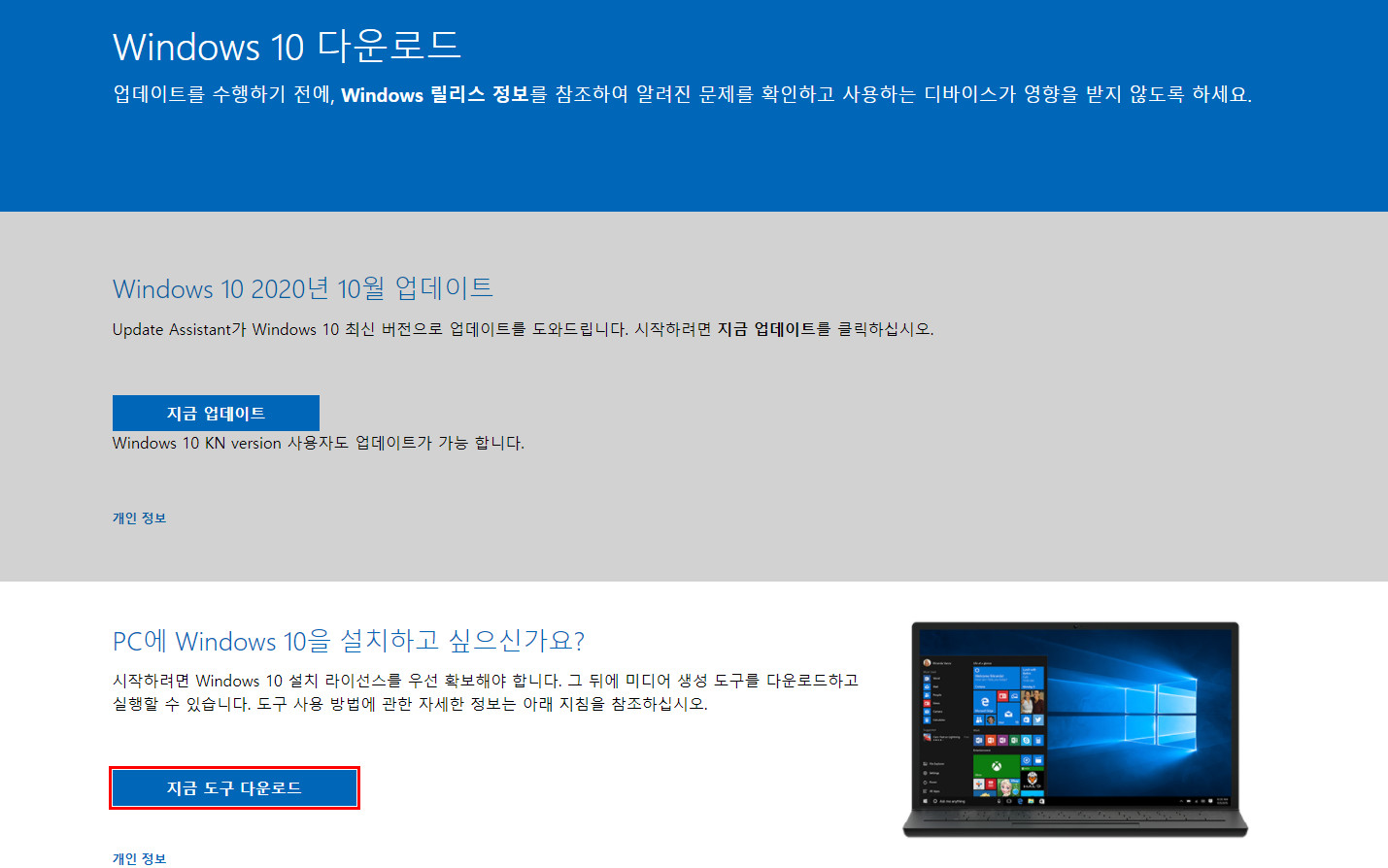 - Microsoft 사이트에 들어가서 제작도구를 다운로드 합니다.