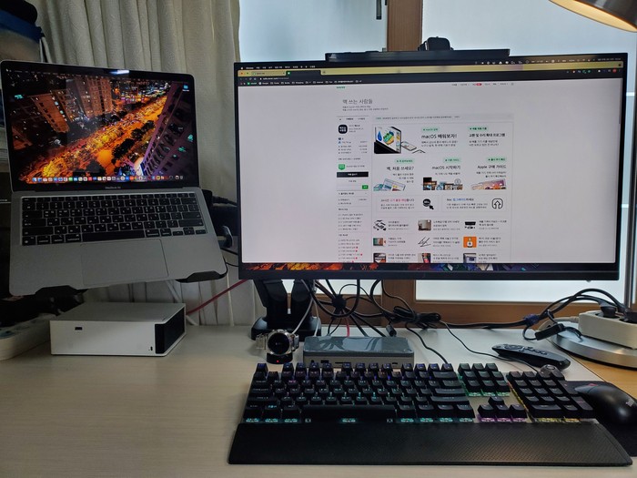 모든 주변기기 연결이 통합으로 정리되어 깔끔한 책상이 됐습니다.