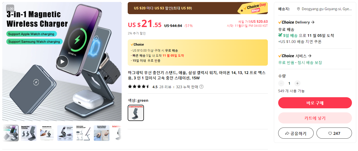 모두 무선충전이 된다는 이점을 이용하여 올인원 무선충전기를 아래와 같은 조건으로 검색했습니다.
