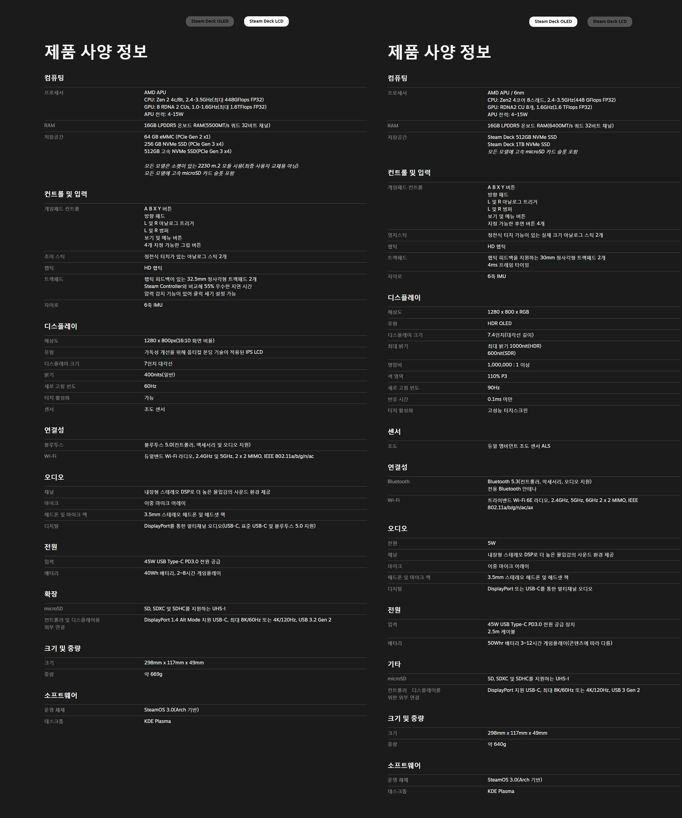 ※기존 LCD와 OLED 버전 상세 비교입니다.