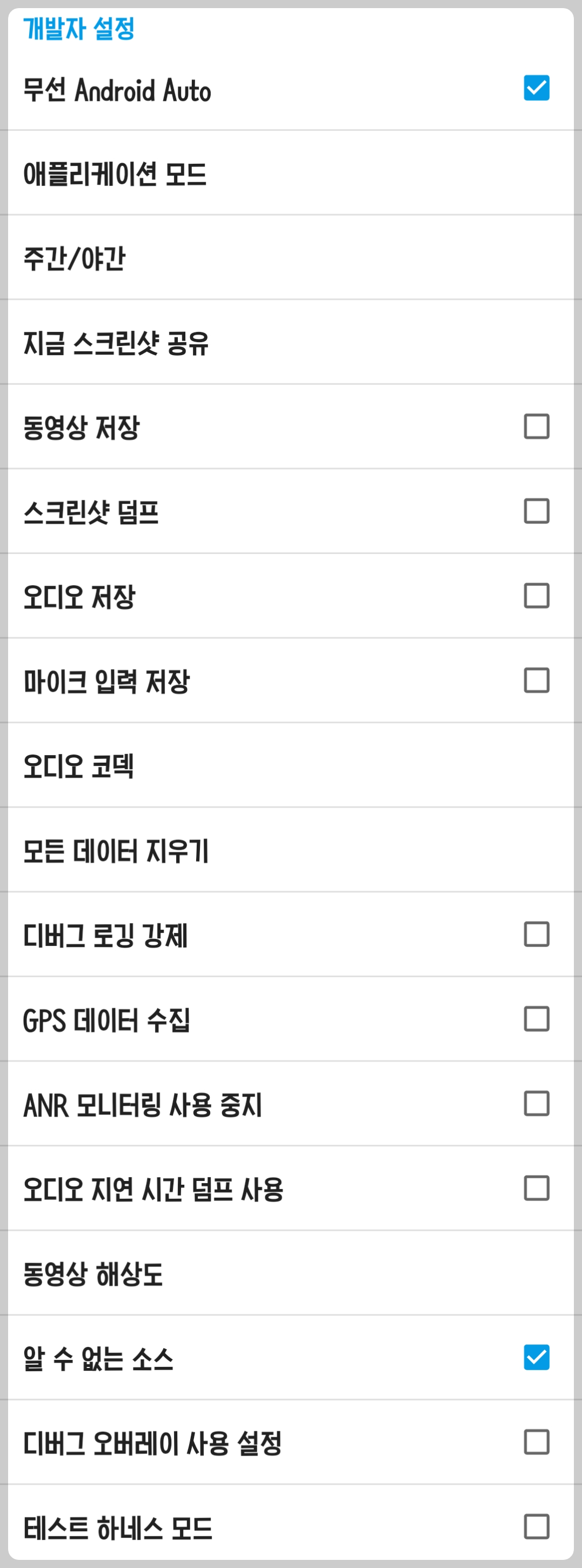 - "무선 Android Auto". "알 수 없는 소스" 를 선택하여 아래와 같이 설정합니다.