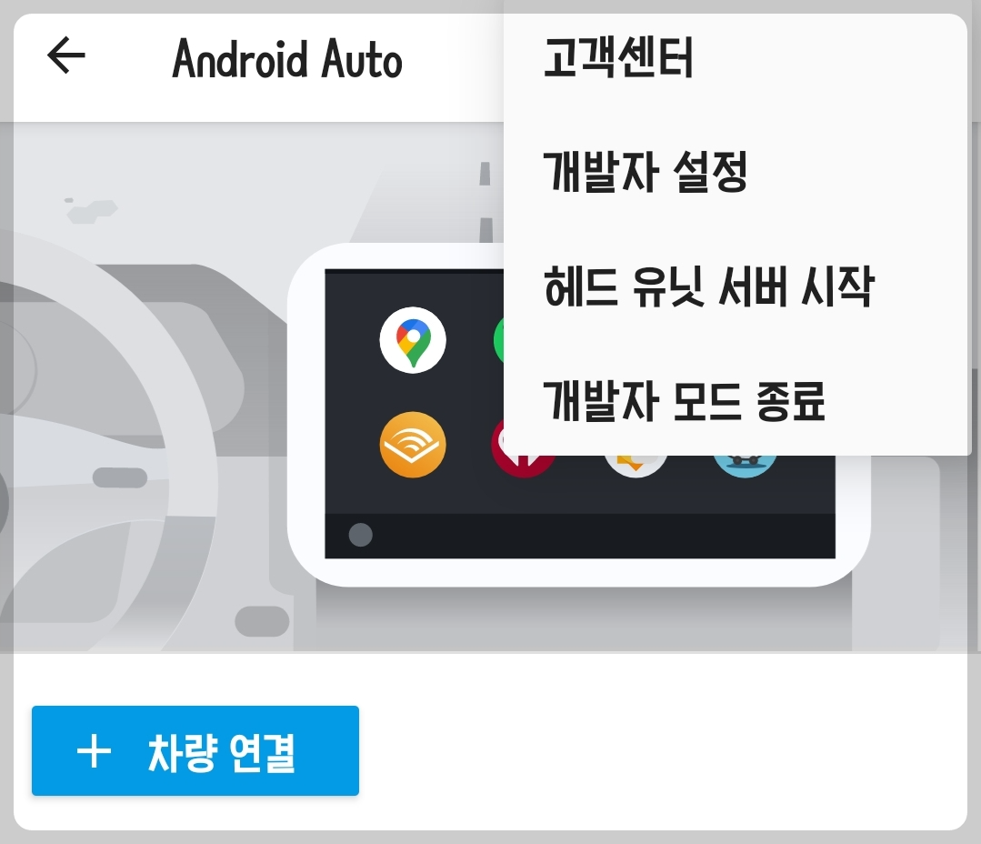 - 폰에서 안드로이드 오토 설치, 개발자 설정 메뉴 활성화, 그리고 무선 설정을 체크합니다.