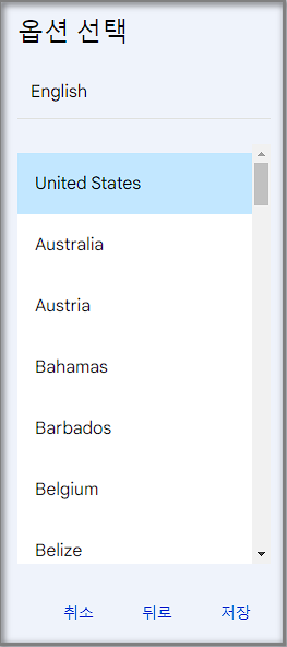 7. 'United States'를 선택하고 '저장'을 클릭합니다.