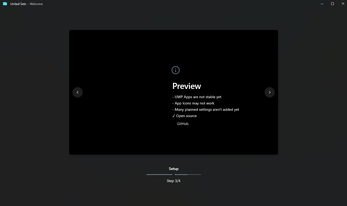 또는 윈도우 시작 메뉴 - 모든 앱 에서 'united sets preview beta' 를 실행해도 됩니다.