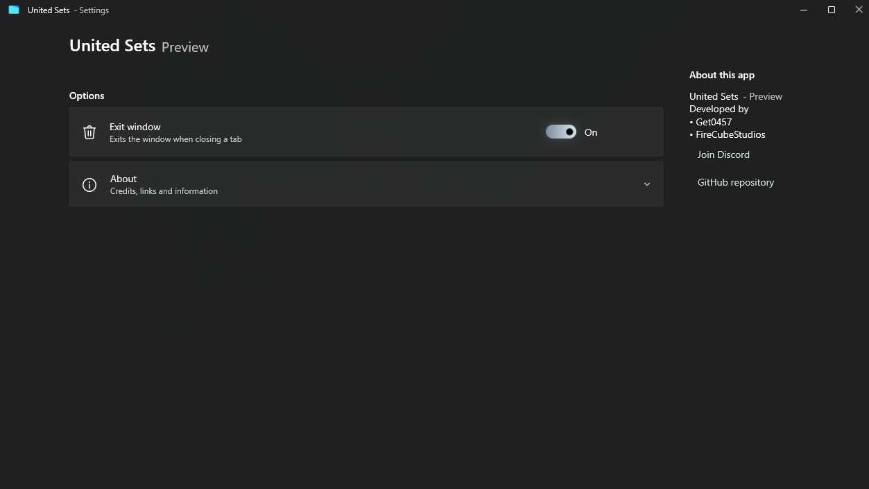 Release All Window : 'united sets preview beta' 를 종료하고 그룹핑되어 있던 윈도우 창은 유지됨
