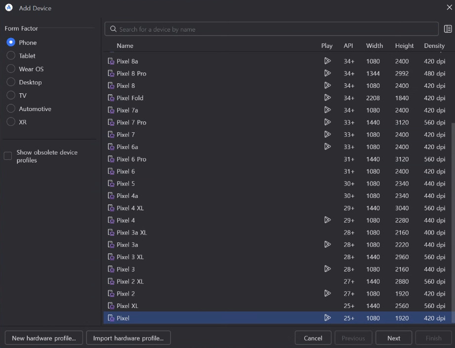 2단계: Android Studio 및 AVD(Android Virtual Device) 설정